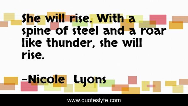 "Nicole Lyons Quotes." Quoteslyfe.com, 2025. Mon. 08 Dec. 2025. <https://www.quoteslyfe.com/quote/She-will-rise-With-a-spine-of-36822>.