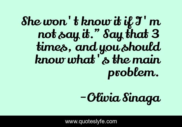 This page presents the quote "She won't know it if I'm not say it." Say that 3 times, and you should know what's the main problem.". Author of this quote is Olivia Sinaga. This quote is about man-woman, communication, love, relationship, affection,.