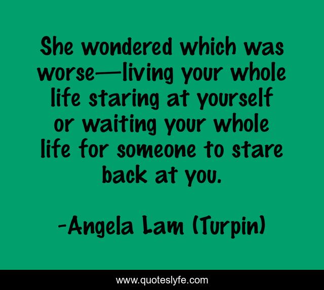 This page presents the quote "She wondered which was worse—living your whole life staring at yourself or waiting your whole life for someone to stare back at you.". Author of this quote is Angela Lam (Turpin). .