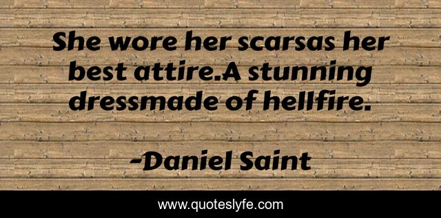 "Daniel Saint Quotes." Quoteslyfe.com, 2025. Sun. 07 Dec. 2025. <https://www.quoteslyfe.com/quote/She-wore-her-scarsas-her-best-attire-76097>.