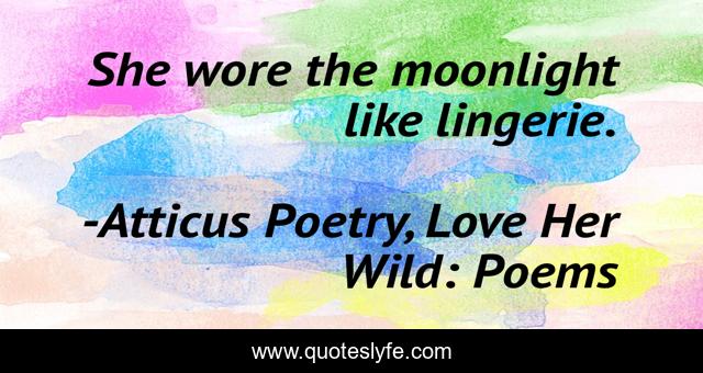 This page presents the quote "She wore the moonlight like lingerie.". Author of this quote is Atticus Poetry, Love Her Wild: Poems. This quote is about atticus, love, instagram, her, atticuspoetry, poetry, quotes, wild, poems,.