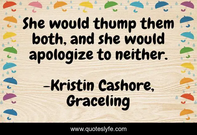 This page presents the quote "She would thump them both, and she would apologize to neither.". Author of this quote is Kristin Cashore, Graceling. .