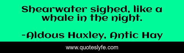 This page presents the quote "Shearwater sighed, like a whale in the night.". Author of this quote is Aldous Huxley, Antic Hay. This quote is about analogies, oceanic, humor, ocean,.