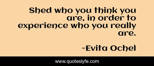 This page presents the quote "Shed who you think you are, in order to experience who you really are.". Author of this quote is Evita Ochel. This quote is about self-awareness, personal-evolution, personal-growth, mindfulness, mind, self-actualization, liberation, ego, personal-development,.