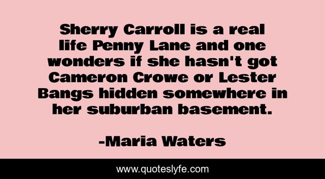 This page presents the quote "Sherry Carroll is a real life Penny Lane and one wonders if she hasn't got Cameron Crowe or Lester Bangs hidden somewhere in her suburban basement.". Author of this quote is Maria Waters. This quote is about backstage, eric-burdon, humor, memoir, rock-music,.