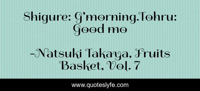 "Natsuki Takaya, Fruits Basket, Vol. 7 Quotes." Quoteslyfe.com, 2025. Sat. 06 Dec. 2025. <https://www.quoteslyfe.com/quote/Shigure-G-morning-Tohru-Good-mo-56420>.