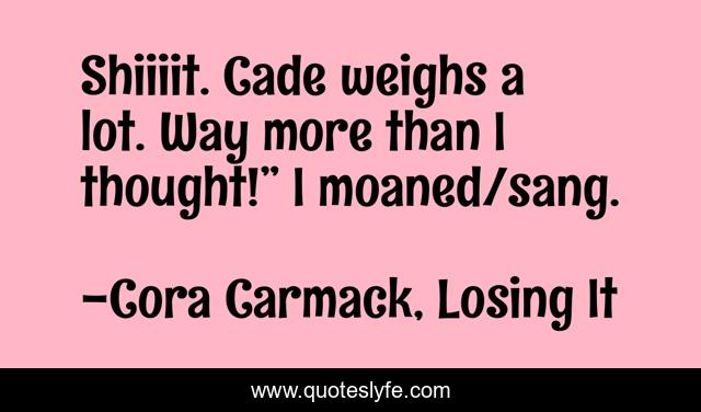 This page presents the quote "Shiiiit. Cade weighs a lot. Way more than I thought!” I moaned/sang.". Author of this quote is Cora Carmack, Losing It. .
