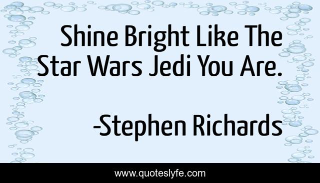 "Stephen Richards Quotes." Quoteslyfe.com, 2025. Sat. 06 Dec. 2025. <https://www.quoteslyfe.com/quote/Shine-Bright-Like-The-Star-Wars-Jedi-78162>.