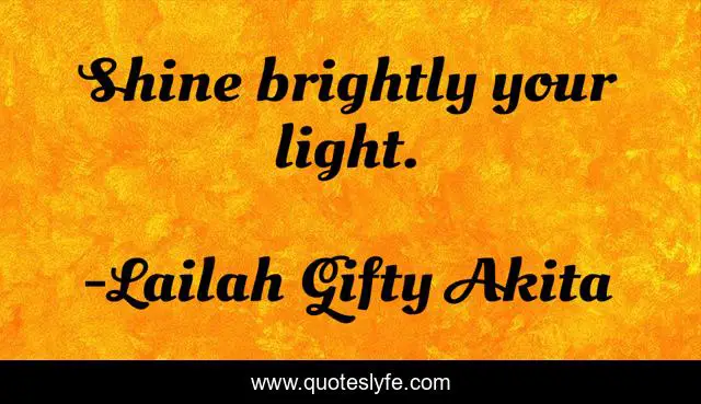 "Lailah Gifty Akita Quotes." Quoteslyfe.com, 2025. Mon. 08 Dec. 2025. <https://www.quoteslyfe.com/quote/Shine-brightly-your-light-118564>.