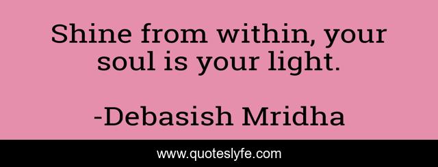 This page presents the quote "Shine from within, your soul is your light.". Author of this quote is Debasish Mridha. This quote is about debasish, shine-your-light, mridha, philosophy, debasish-mridha, soul,.