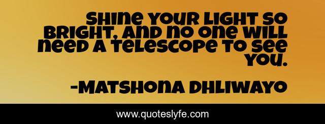 "Matshona Dhliwayo Quotes." Quoteslyfe.com, 2025. Fri. 05 Dec. 2025. <https://www.quoteslyfe.com/quote/Shine-your-light-so-bright-and-no-83371>.