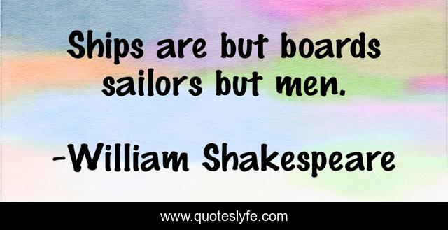 "William Shakespeare Quotes." Quoteslyfe.com, 2025. Sun. 07 Dec. 2025. <https://www.quoteslyfe.com/quote/Ships-are-but-boards-sailors-but-men-276338>.