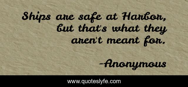 This page presents the quote "Ships are safe at Harbor, but that's what they aren't meant for.". Author of this quote is Anonymous. .
