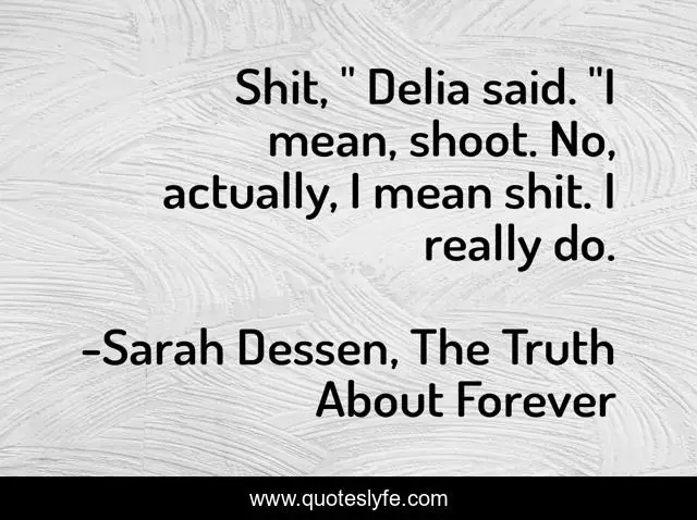 "Sarah Dessen, The Truth About Forever Quotes." Quoteslyfe.com, 2025. Sat. 06 Dec. 2025. <https://www.quoteslyfe.com/quote/Shit-Delia-said-I-mean-shoot-No-40873>.