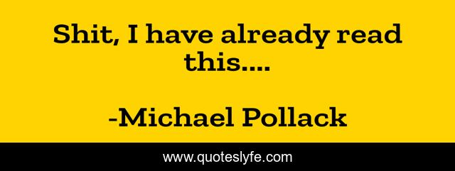 "Michael Pollack Quotes." Quoteslyfe.com, 2025. Fri. 05 Dec. 2025. <https://www.quoteslyfe.com/quote/Shit-I-have-already-read-this-56464>.