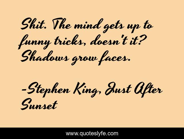 This page presents the quote "Shit. The mind gets up to funny tricks, doesn't it? Shadows grow faces.". Author of this quote is Stephen King, Just After Sunset. This quote is about delusions, regrets,.