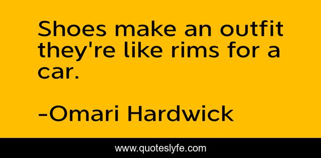 This page presents the quote "Shoes make an outfit they're like rims for a car.". Author of this quote is Omari Hardwick. This quote is about outfit, like, shoes,.