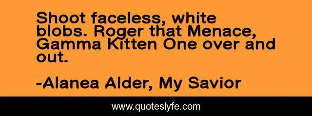 "Alanea Alder, My Savior Quotes." Quoteslyfe.com, 2025. Sat. 06 Dec. 2025. <https://www.quoteslyfe.com/quote/Shoot-faceless-white-blobs-Roger-that-Menace-251547>.