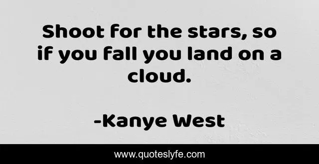 This page presents the quote "Shoot for the stars, so if you fall you land on a cloud.". Author of this quote is Kanye West. .