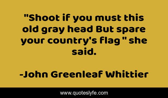 This page presents the quote ""Shoot if you must this old gray head But spare your country's flag " she said.". Author of this quote is John Greenleaf Whittier. .