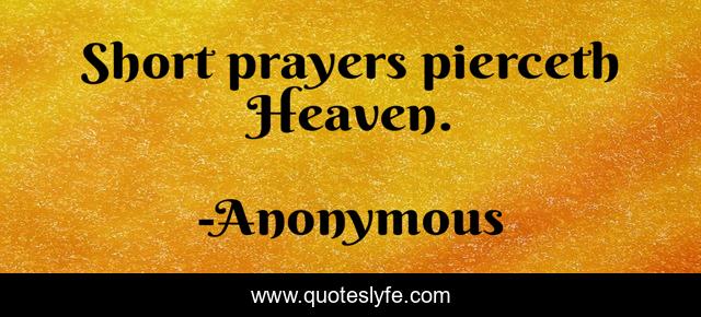 This page presents the quote "Short prayers pierceth Heaven.". Author of this quote is Anonymous. .