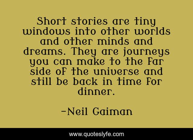 "Neil Gaiman Quotes." Quoteslyfe.com, 2025. Sat. 06 Dec. 2025. <https://www.quoteslyfe.com/quote/Short-stories-are-tiny-windows-into-other-284243>.