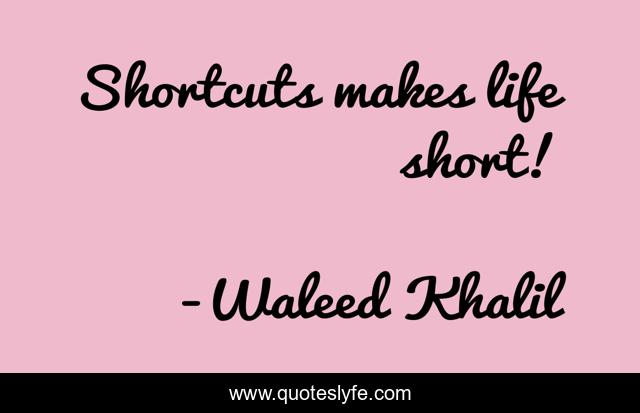 "Waleed Khalil Quotes." Quoteslyfe.com, 2025. Sat. 06 Dec. 2025. <https://www.quoteslyfe.com/quote/Shortcuts-makes-life-short-240082>.