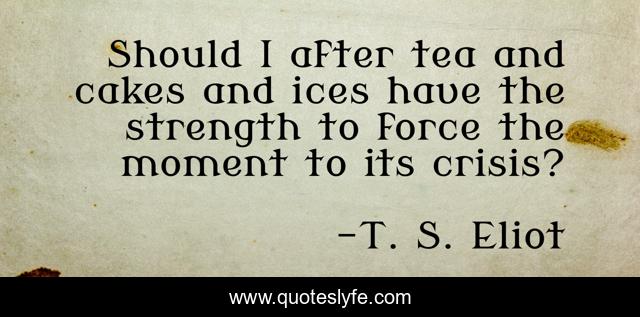 "T. S. Eliot Quotes." Quoteslyfe.com, 2025. Fri. 05 Dec. 2025. <https://www.quoteslyfe.com/quote/Should-I-after-tea-and-cakes-and-262258>.