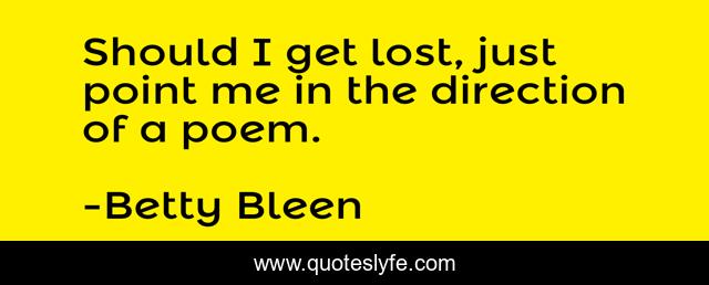 This page presents the quote "Should I get lost, just point me in the direction of a poem.". Author of this quote is Betty Bleen. .