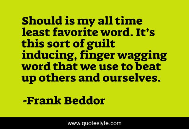 This page presents the quote "Should is my all time least favorite word. It’s this sort of guilt inducing, finger wagging word that we use to beat up others and ourselves.". Author of this quote is Frank Beddor. This quote is about enthusiasm, guilty, inspirational, words,.