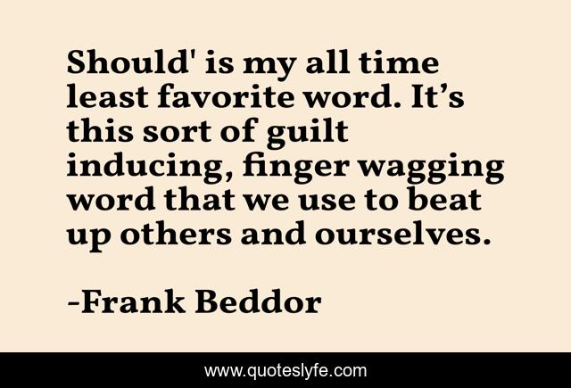 This page presents the quote "Should' is my all time least favorite word. It’s this sort of guilt inducing, finger wagging word that we use to beat up others and ourselves.". Author of this quote is Frank Beddor. This quote is about enthusiasm, guilt, inspirational, words,.
