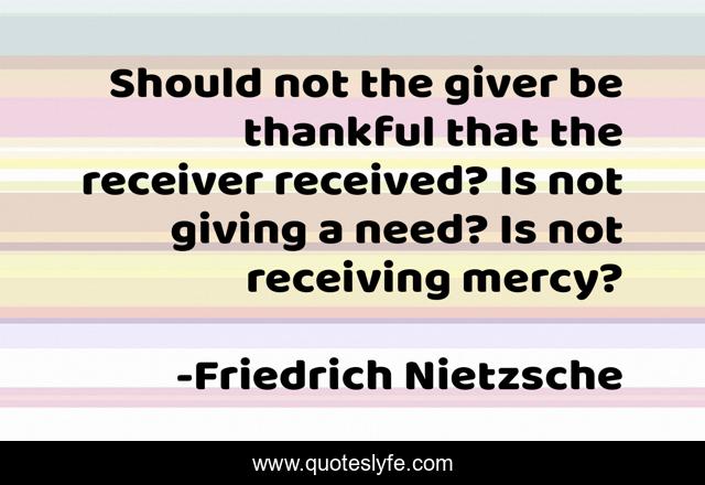 This page presents the quote "Should not the giver be thankful that the receiver received? Is not giving a need? Is not receiving mercy?". Author of this quote is Friedrich Nietzsche. .