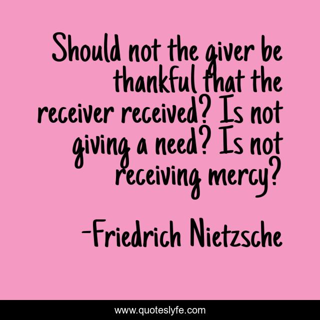 This page presents the quote "Should not the giver be thankful that the receiver received? Is not giving a need? Is not receiving mercy?". Author of this quote is Friedrich Nietzsche. This quote is about giving, goodness,.