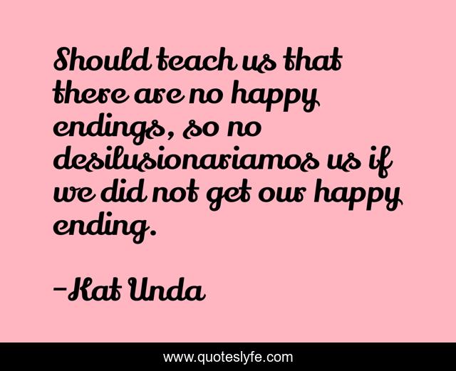 This page presents the quote "Should teach us that there are no happy endings, so no desilusionariamos us if we did not get our happy ending.". Author of this quote is Kat Unda. This quote is about teach, endings, happy,.