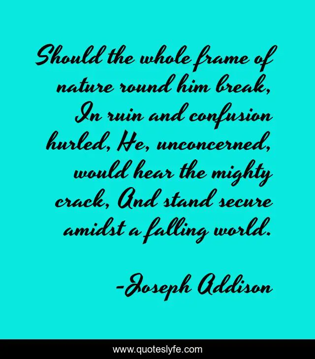 This page presents the quote "Should the whole frame of nature round him break, In ruin and confusion hurled, He, unconcerned, would hear the mighty crack, And stand secure amidst a falling world.". Author of this quote is Joseph Addison. .