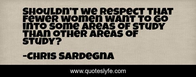 This page presents the quote "Shouldn’t we respect that fewer women want to go into some areas of study than other areas of study?". Author of this quote is Chris Sardegna. This quote is about woman, lifestyle, studying, choices, respect, politics, anti-feminism, women,.