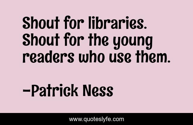 "Patrick Ness Quotes." Quoteslyfe.com, 2025. Sat. 06 Dec. 2025. <https://www.quoteslyfe.com/quote/Shout-for-libraries-Shout-for-the-young-258654>.