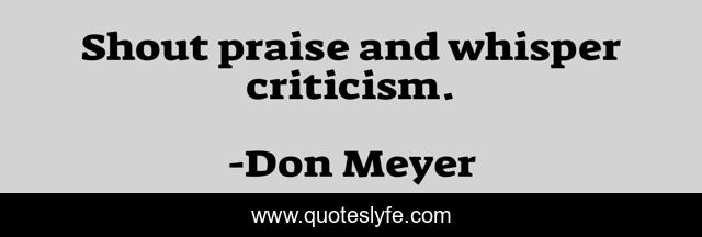 This page presents the quote "Shout praise and whisper criticism.". Author of this quote is Don Meyer. This quote is about criticism, praise,.