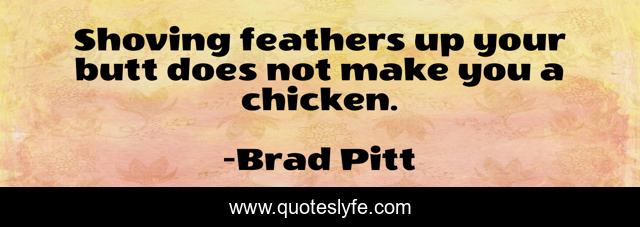 This page presents the quote "Shoving feathers up your butt does not make you a chicken.". Author of this quote is Brad Pitt. This quote is about chickens, butts, feathers, reality,.