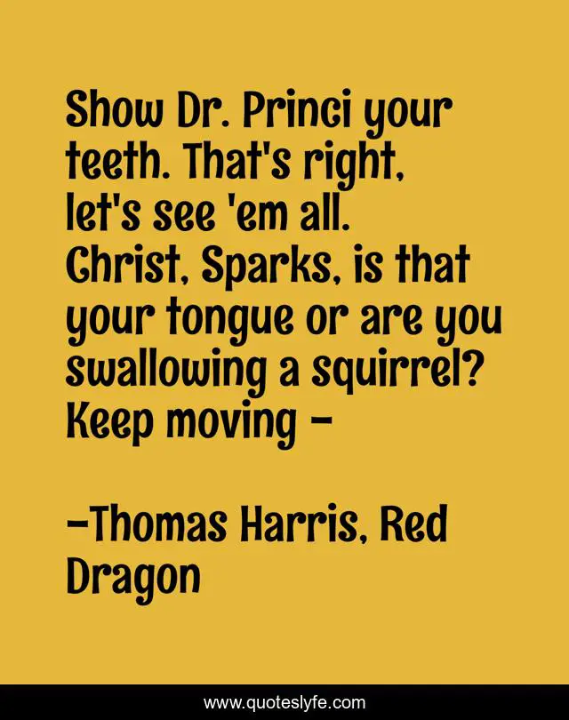 "Thomas Harris, Red Dragon Quotes." Quoteslyfe.com, 2025. Mon. 08 Dec. 2025. <https://www.quoteslyfe.com/quote/Show-Dr-Princi-your-teeth-That-s-194765>.