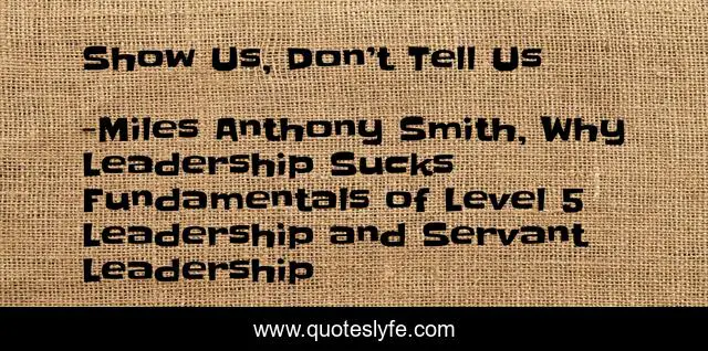 "Miles Anthony Smith, Why Leadership Sucks™ Fundamentals of Level 5 Leadership and Servant Leadership Quotes." Quoteslyfe.com, 2025. Sat. 06 Dec. 2025. <https://www.quoteslyfe.com/quote/Show-Us-Don-t-Tell-Us-194324>.