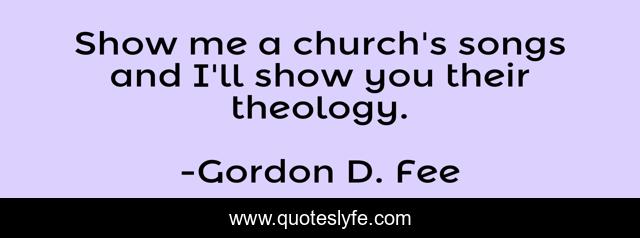 This page presents the quote "Show me a church's songs and I'll show you their theology.". Author of this quote is Gordon D. Fee. .