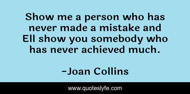 This page presents the quote "Show me a person who has never made a mistake and Ell show you somebody who has never achieved much.". Author of this quote is Joan Collins. This quote is about failures, mistakes,.