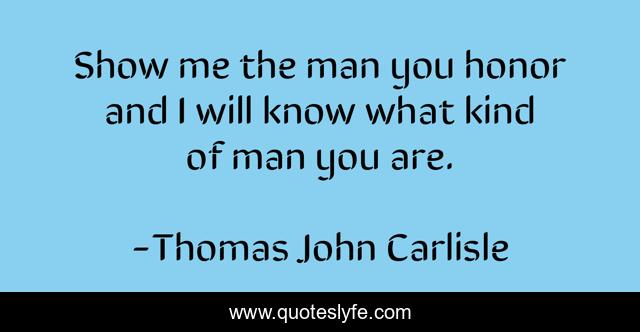 This page presents the quote "Show me the man you honor and I will know what kind of man you are.". Author of this quote is Thomas John Carlisle. .