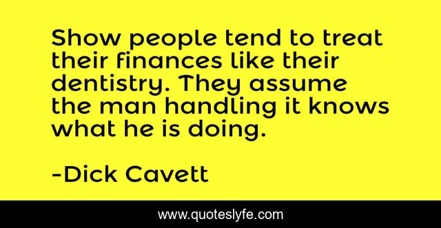 This page presents the quote "Show people tend to treat their finances like their dentistry. They assume the man handling it knows what he is doing.". Author of this quote is Dick Cavett. This quote is about man, treat, people,.