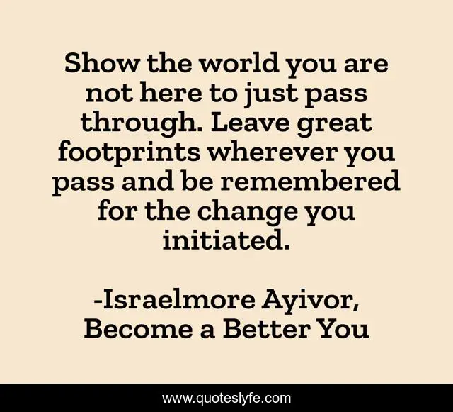 Show the world you are not here to just pass through. Leave great footprints wherever you pass and be remembered for the change you initiated.