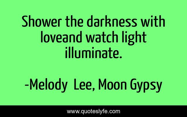 "Melody Lee, Moon Gypsy Quotes." Quoteslyfe.com, 2025. Mon. 08 Dec. 2025. <https://www.quoteslyfe.com/quote/Shower-the-darkness-with-loveand-watch-light-118300>.