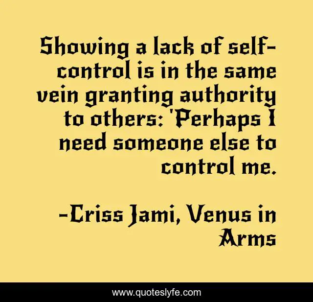 "Criss Jami, Venus in Arms Quotes." Quoteslyfe.com, 2025. Fri. 05 Dec. 2025. <https://www.quoteslyfe.com/quote/Showing-a-lack-of-self-control-is-179649>.