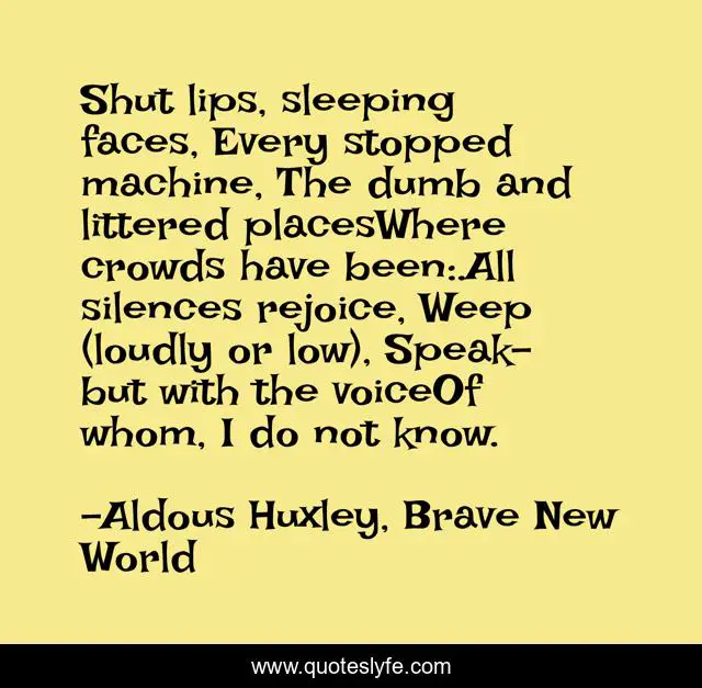 "Aldous Huxley, Brave New World Quotes." Quoteslyfe.com, 2025. Sat. 06 Dec. 2025. <https://www.quoteslyfe.com/quote/Shut-lips-sleeping-faces-Every-stopped-machine-158380>.