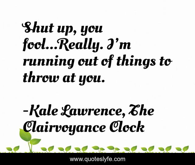 "Kale Lawrence, The Clairvoyance Clock Quotes." Quoteslyfe.com, 2025. Fri. 05 Dec. 2025. <https://www.quoteslyfe.com/quote/Shut-up-you-fool-Really-I-m-149226>.